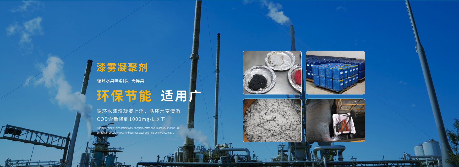 漆霧凝聚劑由破粘劑和絮凝劑組成,破粘劑大多由中等分子量的陽離子聚合物組成,電荷極高,對漆滴能產(chǎn)生很強的吸引力,當(dāng)漆滴被“捕捉”吸附后它利用二極不同的親和性將漆滴完全包裹,并穿透漆滴,破壞涂料的功能基團,使其完全消除粘性,并帶動被包裹破粘的漆滴上浮。絮凝劑大多由分子量幾千萬的聚合物組成,通過在分子之間的“架橋”作用,聚集被破壞的漆霧和雜質(zhì)成較大的基團,使其堅固和粘合,增強機械脫水的效率。絮凝劑還可中和系統(tǒng)電荷,保持系統(tǒng)中的離子平衡,且分子量較大,使凝集基團在系統(tǒng)中上浮速度加快,并結(jié)成漆渣浮于水面。